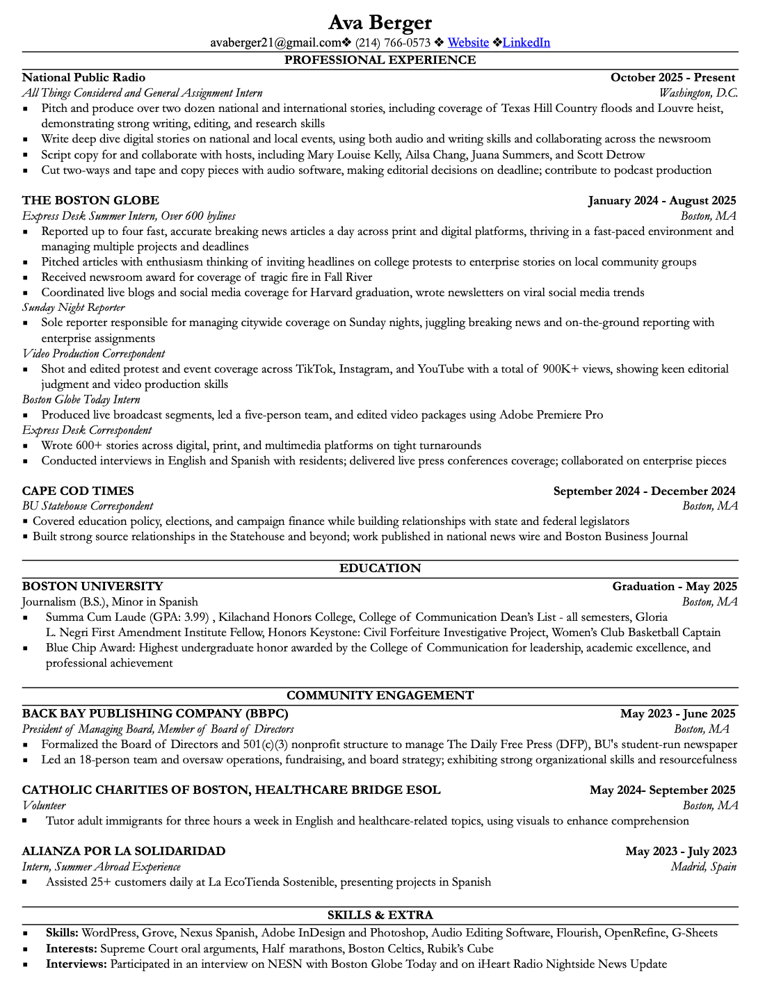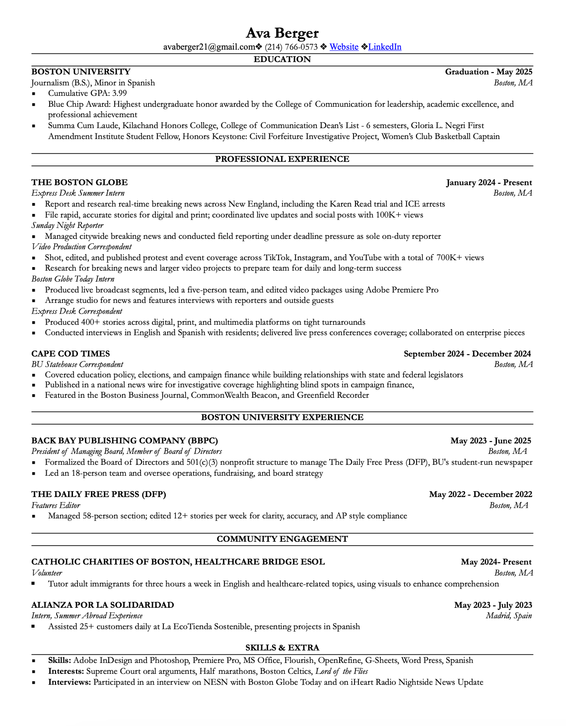 Contact + Resume